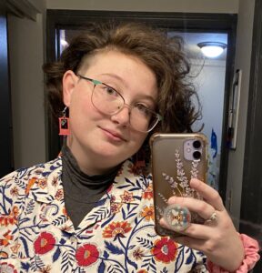 Abby Taggart (she/her) is a gen z lesbian with brand new degrees in mechanical engineering, english, and creative writing. She’s madly in love with this squishy queer-ass world of ours and hopes to make it a better place with both engineering work in sustainability and her art. Winner of the 2025 Staples Capstone Prize, her work can be found in several volumes of Short Vine as well as the Ohio Writers’s Association’s 2025 Anthology “Should This Book be Banned?” Off the page, Abby can be found crocheting, making overly detailed spreadsheets, rolling around in the grass, and doom scrolling.